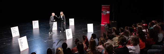 Mit einem Augenzwinkern zeigen wir auf, dass oft wir nicht weghören, wenn wir denken, dass wir zuhören. Wir machen die Wirkung von echtem Zuhören erlebbar – mitten im Publikum, mitten ins Herz.